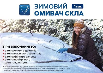 Водії вже активно почали обирати зручний час і записуватися до нас за Зимовим омивачем скла за 1 грн.* Подбайте і ви про власний автомобіль, записуйтесь вже зараз на сайті або ж за телефоном та приїздіть на сервіс Форд ВІДІ Край Моторз!